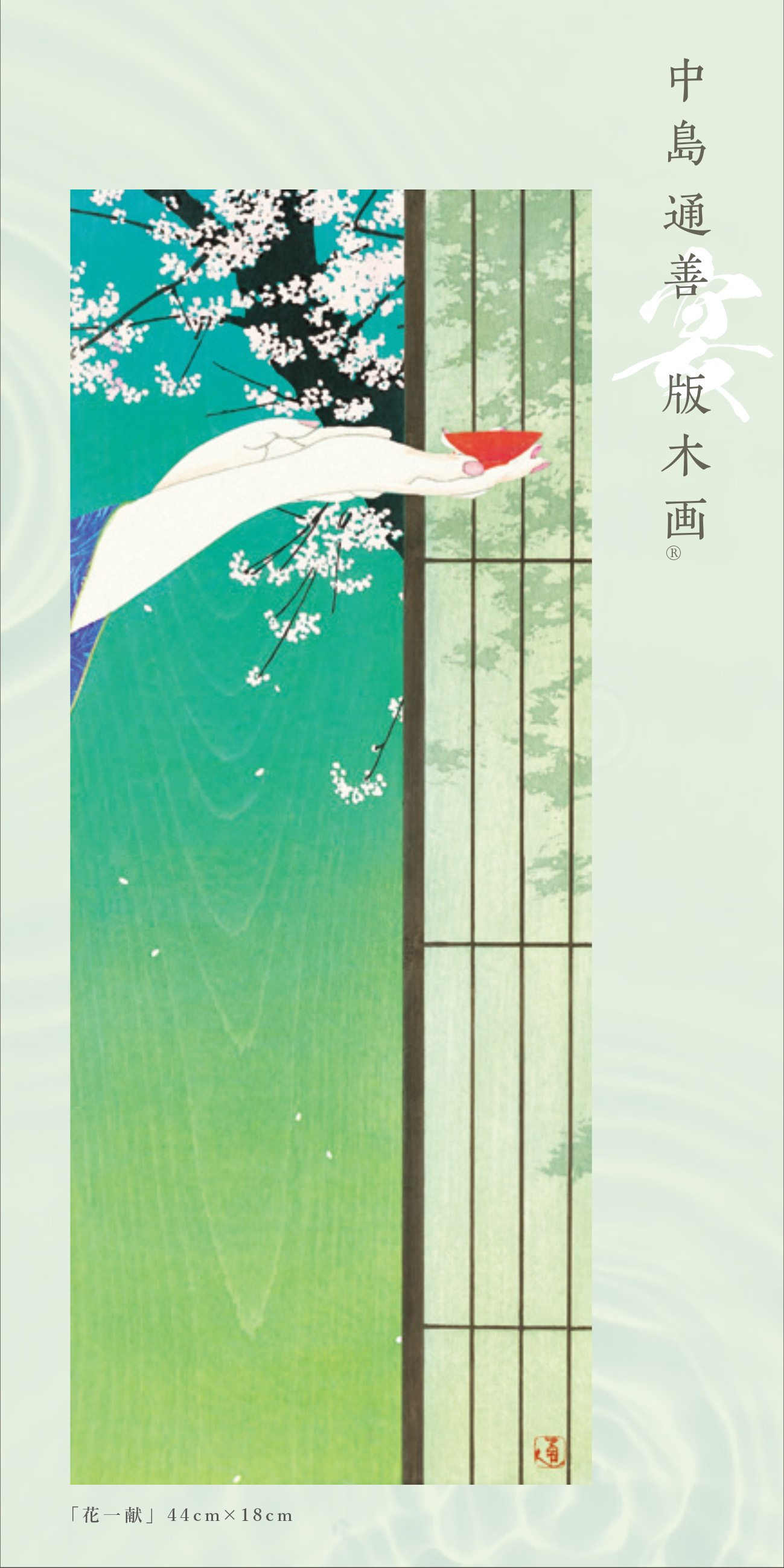 百花繚乱展の最初を飾る「宴」は、中島版画を代表する画題「桜」を中心に花をテーマに展覧いたします。